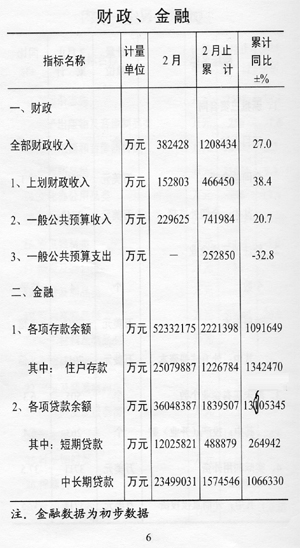 ——金融形勢(shì)平穩(wěn)。截至2月底,全市本外幣各項(xiàng)存款余額5233.2億元,比年初增加222.1億元,其中住戶(hù)存款余額2508.0億元,比年初增加122.7億元,各項(xiàng)貸款余額3604.8億元,比年初增加184.0億元。