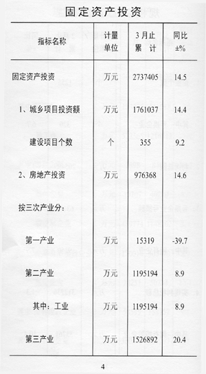 ——投資較快增長。固定資產(chǎn)投資完成273.7億元,同比增長14.5%,比上年同期回落6.O個百分點。其中,城鄉(xiāng)項目投資176.1億元,增長14.4%;房地產(chǎn)開發(fā)投資97.6億元,增長14.6%。