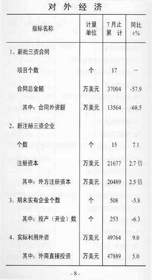 ——利用外資增加。全市實(shí)際利用外資49764萬美元,同比增加4103萬美元。其中,外商直接投資47889萬美元,增加2301萬美元。