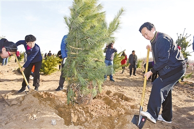 市委書記馮韶慧參加義務(wù)植樹活動(dòng)。 記者 劉向 攝