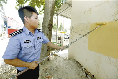6月16日上午,在市二十三小附近,市綜合執(zhí)法局工作人員操作高壓清洗車,手持高壓水槍,伴隨機器的轟鳴聲,只見高壓水槍噴出的高速水流如一把“手術刀”,幾分鐘的時間,原來布滿墻面的非法小廣告就被清理得一干二凈。