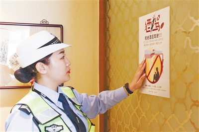 “在飯店門口和店內(nèi)貼上醒目的宣傳卡通畫,讓進(jìn)店就餐的食客一眼就能看到上面的‘溫馨提醒’,從而提高司機安全意識,預(yù)防減少交通事故發(fā)生。用活潑的卡通民警貼畫代替生硬的命令式宣傳標(biāo)語,讓群眾感覺更溫馨、更容易接受?!?/p>
