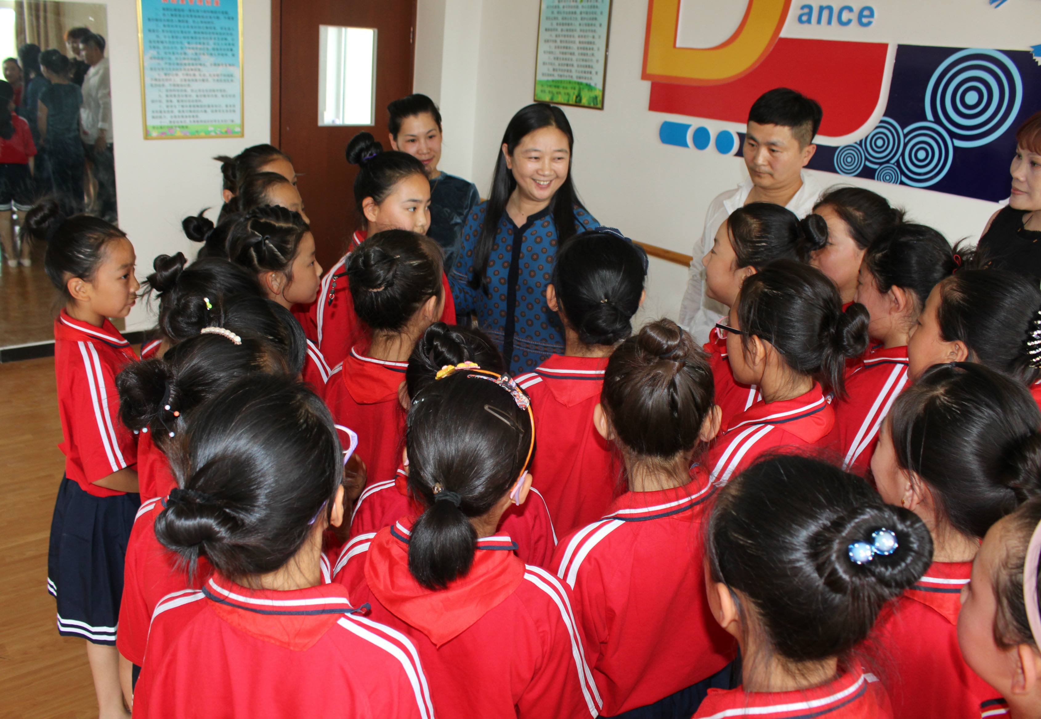 省舞協(xié)主席張新茹女士與大廠一小的學生們親切交流跳舞心得