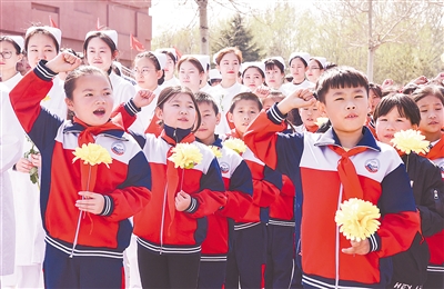 當(dāng)日,“扣好人生第一粒扣子·慶祝新中國成立70周年”2019年全市未成年人“傳承紅色基因”系列教育活動(dòng)同步開展?;顒?dòng)現(xiàn)場,學(xué)生代表宣讀了《致廣大中小學(xué)生的一封信》,號(hào)召全市未成年人用實(shí)際行動(dòng)緬懷先烈?!拔覀円^承先烈遺志,樹立遠(yuǎn)大理想,奮發(fā)圖強(qiáng),努力學(xué)習(xí),全面發(fā)展,早日成才,為實(shí)現(xiàn)中華民族偉大復(fù)興的中國夢而奮斗?!绷沂考o(jì)念碑前,學(xué)生們鏗鏘有力的宣誓聲響徹廣場,讓現(xiàn)場所有人深受感染。