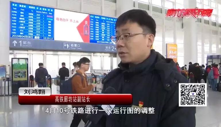 記者從鐵路部門了解到,從4月10號零時起,全國鐵路將實施新的列車運行圖,調(diào)整之后高鐵廊坊站的四趟列車和廊坊北站的三趟列車將有變化。
