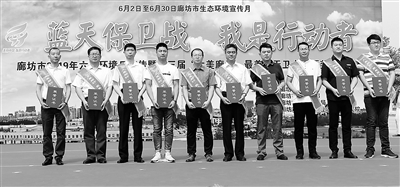 第三屆10名“大美廊坊·最美藍(lán)天衛(wèi)士之星”合影。 記者 陳童 攝