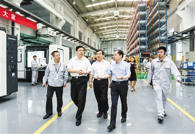 6月4日,我市舉行2019年上半年全市項(xiàng)目拉練觀摩。市委書(shū)記馮韶慧(左二)帶隊(duì)觀摩部分縣(市、區(qū))、廊坊開(kāi)發(fā)區(qū)15個(gè)2018年下半年以來(lái)新開(kāi)工的產(chǎn)業(yè)類(lèi)項(xiàng)目和省、市重點(diǎn)建設(shè)項(xiàng)目情況。圖為觀摩新奧動(dòng)力科技(廊坊)有限公司微型燃?xì)廨啓C(jī)生產(chǎn)基地項(xiàng)目。