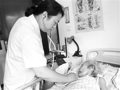 圖為邢麗琴在給簽約患者聽診。記者 隋炳暉 攝