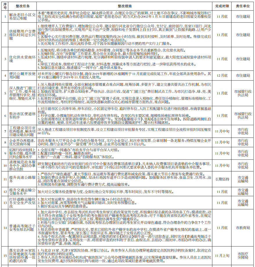 廊坊市“不忘初心、牢記使命”主題教育整改事項(xiàng)