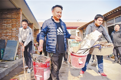 圖為三河市西柳河屯村黨員幫助貧困戶打掃庭院。 記者 李泳辰 攝