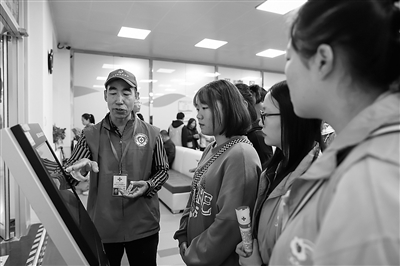 無償獻(xiàn)血志愿者向市民介紹無償獻(xiàn)血自助填表機(jī)的使用方法。 記者 吳瓊 攝