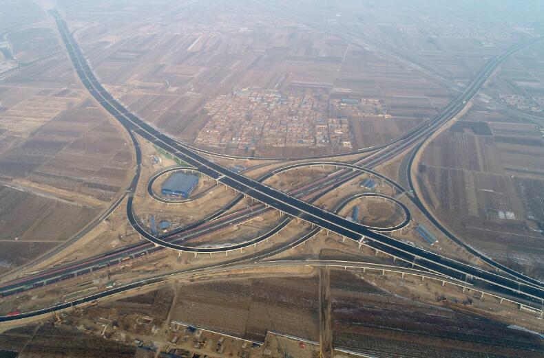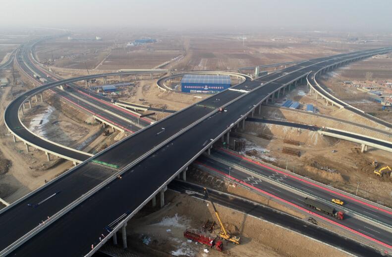 這是1月3日拍攝的北京大興國(guó)際機(jī)場(chǎng)北線高速公路廊坊段王場(chǎng)互通樞紐(無人機(jī)照片)。