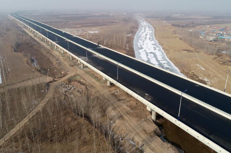 這是1月3日拍攝的北京大興國(guó)際機(jī)場(chǎng)北線高速公路廊坊段龍河特大橋(無人機(jī)照片)。 新華社記者牟宇攝