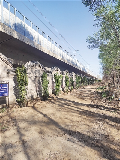 圖為自然公園高鐵沿線北墻新種植的北海道黃楊,棵棵挺拔。