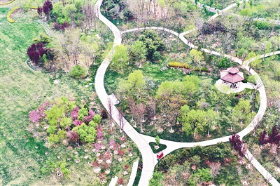 俯瞰潮白河中央公園。 記者 賈珺 攝