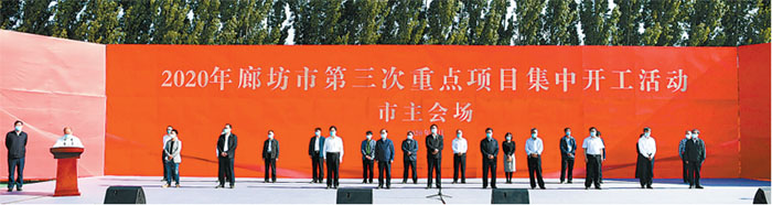 圖為2020年廊坊市第三次重點(diǎn)項(xiàng)目集中開(kāi)工活動(dòng)現(xiàn)場(chǎng)。