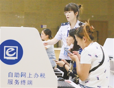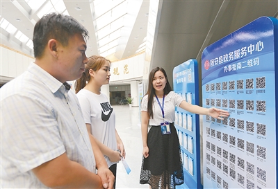 市民服務(wù)中心工作人員為群眾講解二維碼辦事流程。