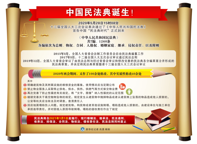 圖表:中國民法典誕生!新華社記者 肖瀟 編制