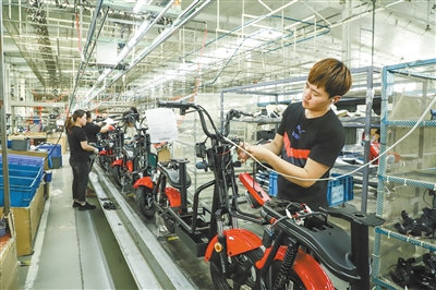 河北立馬電動車廠的工作人員正在對電動車進行加工。