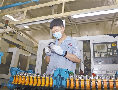 圖為香河縣凱華齒輪有限公司工人在生產(chǎn)車間開足馬力趕生產(chǎn)。