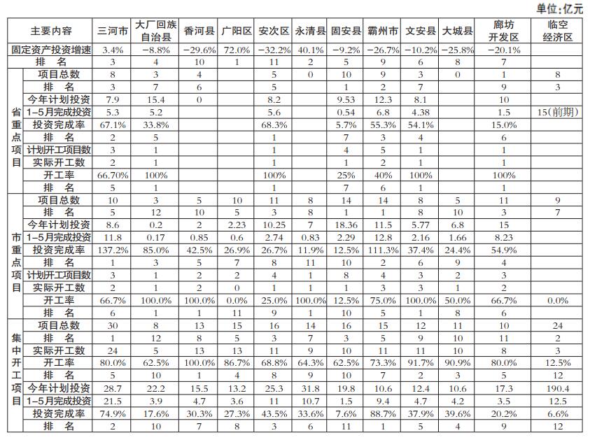 廊坊市2020年1—5月投資和重點項目建設(shè)情況通報