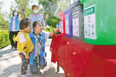 安次區(qū)垃圾分類宣傳活動現(xiàn)場,志愿者正在向小朋友講解相關(guān)知識。
