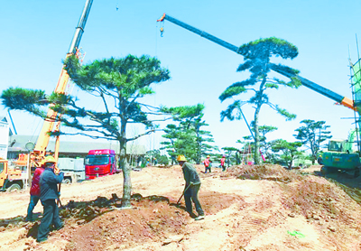 4月21日,走進(jìn)廊坊園城市展園的施工現(xiàn)場,腳手架林立,工程車輛繁忙穿梭,工人奮戰(zhàn)在各自作業(yè)面上,一座集文化藝術(shù)、民俗活動(dòng)、康養(yǎng)、電子動(dòng)漫于一體的特色展館雛形初顯。將目光“轉(zhuǎn)戰(zhàn)”至廊坊園的另一個(gè)重要組成部分——城市林,這里已是生機(jī)勃勃,近四萬棵苗木迎風(fēng)“點(diǎn)頭”,遠(yuǎn)遠(yuǎn)望去,一片綠意盎然的景象。