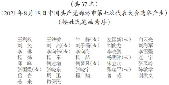 中國共產(chǎn)黨廊坊市第七屆紀(jì)律檢查委員會委員名單