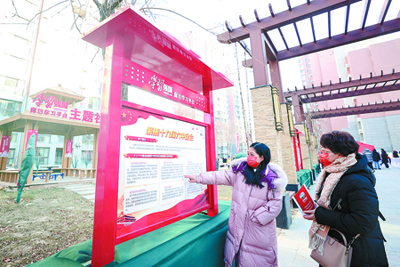 走進廣陽區(qū)五福街社區(qū),小區(qū)廣場中央設立了“學習強國”廊坊學習平臺主題社區(qū)雕塑,耀眼的中國紅噴繪扮靚了美麗小區(qū)。長廊南側,“學習強國”廊坊學習平臺欄目、功能展板一覽無遺;長廊北側黨的十九屆六中全會精神、共產黨精神講述著共產黨的奮進力量和時代擔當;主題社區(qū)學習亭成為居民學習黨史的好去處……日月其邁,時盛歲新,2022年元旦之際,五福街社區(qū)掀起了紅色“學習”潮。
