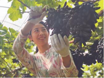 “‘藍(lán)寶石’葡萄生長周期長,錯(cuò)開露地葡萄上市季節(jié),能賣個(gè)好價(jià)錢?!苯衲?0歲的馬嘯宇溫文爾雅,看起來踏實(shí)能干。他2015年大學(xué)畢業(yè),選擇返鄉(xiāng)創(chuàng)業(yè),承包了40畝地,用自家養(yǎng)豬廠糞污水處理后做肥水,種植大田作物。后因經(jīng)濟(jì)效益低,改種高附加值的“藍(lán)寶石”葡萄?!暗降谌?,我的葡萄園就迎來盛果期?!彼f。