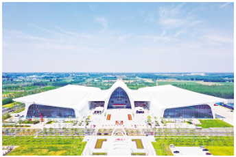 廊坊臨空國(guó)際會(huì)展中心位于廊坊臨空經(jīng)濟(jì)區(qū)科創(chuàng)片區(qū),該項(xiàng)目總建筑面積14.8萬(wàn)平方米,由1個(gè)會(huì)議中心和4座展館組成,是廊坊展示對(duì)外開放形象的重要窗口及助力京津冀協(xié)同發(fā)展的重要平臺(tái),此次將作為2023年中國(guó)·廊坊國(guó)際經(jīng)濟(jì)貿(mào)易洽談會(huì)的重要活動(dòng)場(chǎng)館,面向公眾開放。整座建筑以“羽飛長(zhǎng)空 科創(chuàng)未來(lái)”為設(shè)計(jì)理念,采用由屋脊向兩側(cè)舒展的“中軸對(duì)稱、輕盈飄逸”設(shè)計(jì)造型,從高空俯瞰呈現(xiàn)展翅欲飛之勢(shì)。廊坊臨空國(guó)際會(huì)展中心的建成,將對(duì)北京大興國(guó)際機(jī)場(chǎng)臨空經(jīng)濟(jì)區(qū)(廊坊)發(fā)展起到重要作用,帶動(dòng)臨空經(jīng)濟(jì)區(qū)特色金融、航空制造、航空研發(fā)、高端裝備智能制造等產(chǎn)業(yè)展翅騰飛。