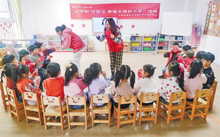 近日,固安縣永康南路南社區(qū)邀請(qǐng)固安縣教師進(jìn)修學(xué)校三名老師來(lái)到轄區(qū)幼兒園,開(kāi)展“學(xué)守則 守規(guī)范 爭(zhēng)做文明好少年”文明實(shí)踐活動(dòng)。小朋友們踴躍參與,從游戲中了解到各種情緒產(chǎn)生的原因,并懂得了調(diào)控情緒、養(yǎng)成良好行為習(xí)慣的重要性。