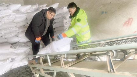 2月21日,永清縣全縣范圍內(nèi)出現(xiàn)降雪。永清縣地方道路管理站組織人員對(duì)全縣縣道及重要鄉(xiāng)道急彎陡坡、易發(fā)生雪阻路段、易結(jié)冰背陰路段、事故多發(fā)點(diǎn)段等重點(diǎn)路段進(jìn)行巡查,同時(shí),組織人員、機(jī)械開展除雪保暢工作,全力保障農(nóng)村公路安全暢通。該站出動(dòng)路政、養(yǎng)護(hù)人員20余人、融雪劑撒布車2臺(tái)、鏟雪車2臺(tái)、路政車3輛,巡查公路130公里,撒布融雪劑30噸,除雪保暢工作持續(xù)進(jìn)行中。 圖為工作人員搬運(yùn)除雪物資。