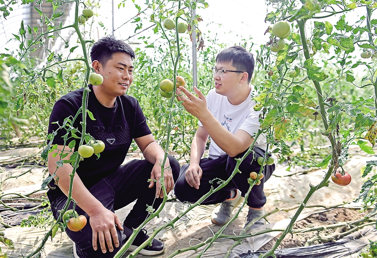在里坦鎮(zhèn)一村一家設(shè)施大棚內(nèi),農(nóng)技專家指導(dǎo)農(nóng)民預(yù)防病蟲害。