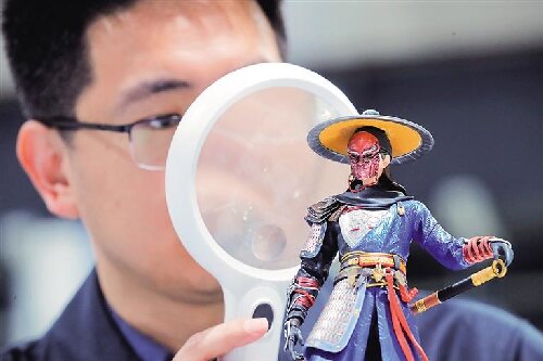 廊坊精雕數(shù)控機(jī)床制造有限公司員工正在查看制作的手辦玩具。
