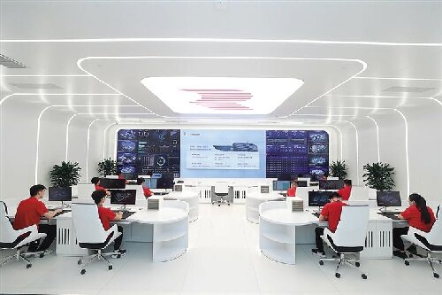 廊坊開發(fā)區(qū)潤澤數(shù)據(jù)中心運(yùn)維監(jiān)控室內(nèi),工作人員在全神貫注工作。