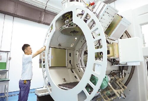 ⑦7月21日,新里程醫(yī)療(廊坊臨空自貿(mào)區(qū))集團有限公司的工程師正在調(diào)試ct引導直線加速器。