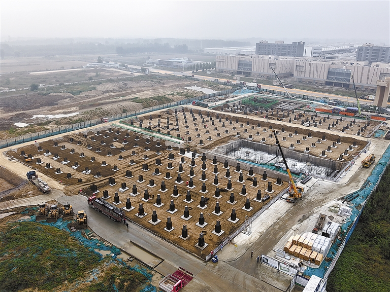 “項(xiàng)目7月底正式開工,目前質(zhì)檢綜合樓、疫苗生產(chǎn)樓、聯(lián)合廠房、動物房基礎(chǔ)承臺和土方回填已全部施工完成,正在進(jìn)行第一節(jié)鋼結(jié)構(gòu)短柱安裝?!卑贂熒镝t(yī)藥研發(fā)生產(chǎn)項(xiàng)目建設(shè)單位負(fù)責(zé)人王凱介紹,預(yù)計今年年底完成全部主體結(jié)構(gòu)工程建設(shè)。