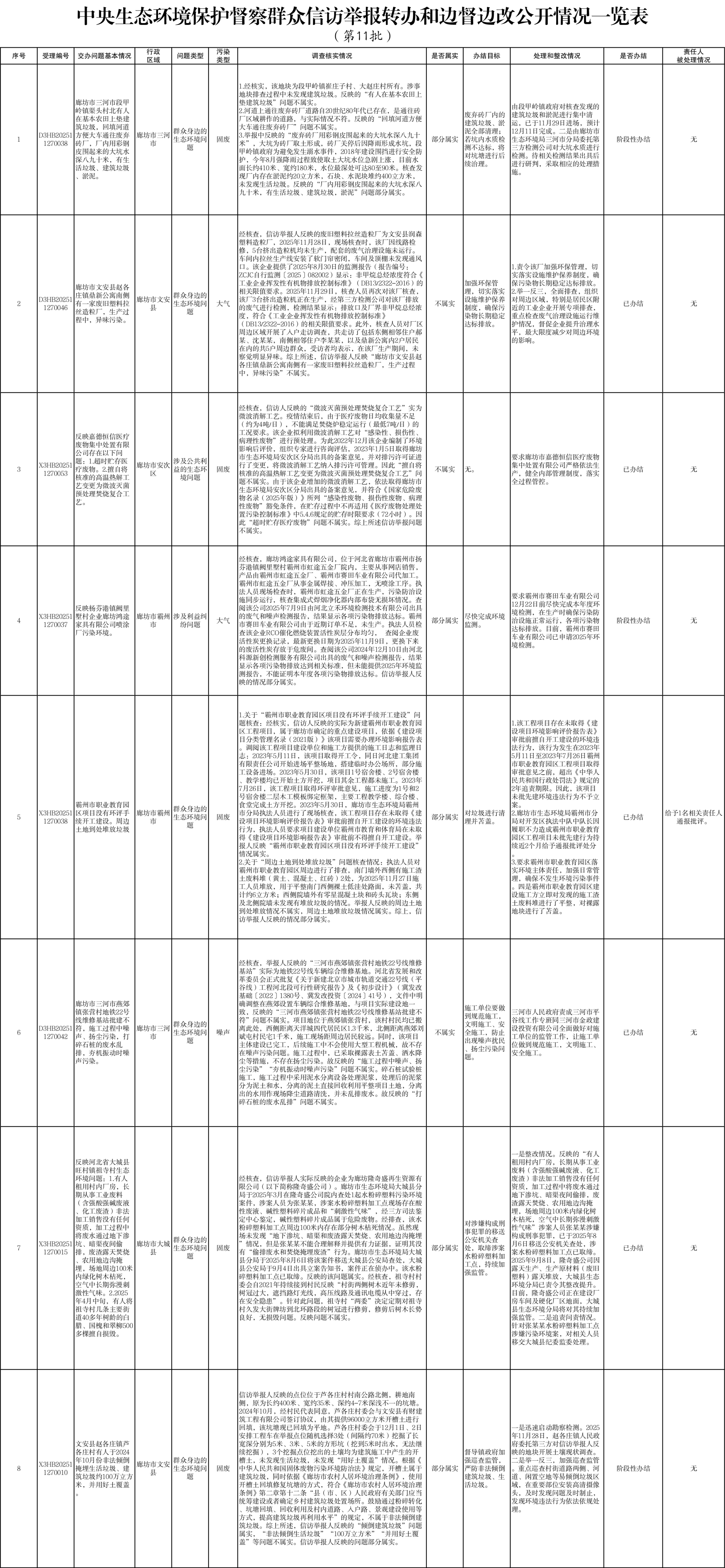 附件:《中央生態(tài)環(huán)境保護(hù)督察群眾信訪舉報轉(zhuǎn)辦和邊督邊改公開情況一覽表(第11批)》