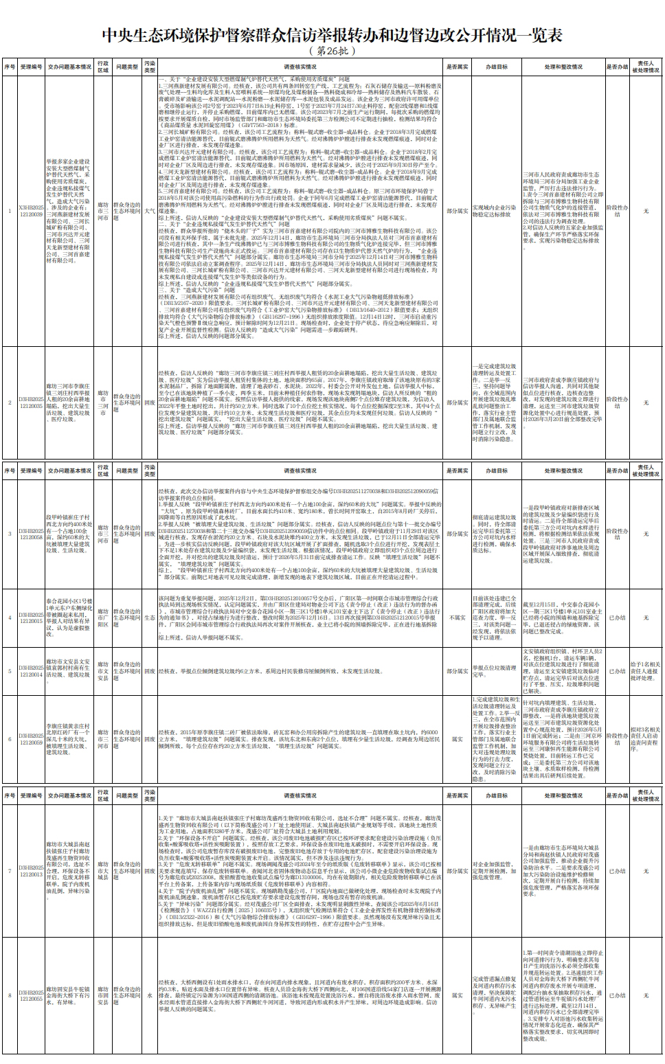 中央生態(tài)環(huán)境保護(hù)督察組交辦廊坊市第二十六批群眾信訪舉報(bào)案件辦理情況