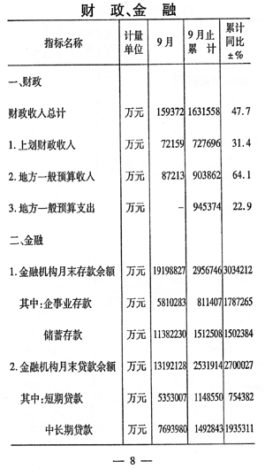 ——金融形勢平穩(wěn)。9月末,全市金融機(jī)構(gòu)本外幣各項(xiàng)存款余額1919.9億元,比年初增加295.7億元,其中城鄉(xiāng)居民儲蓄存款余額1138.2億元,比年初增加151.3億元,各項(xiàng)貸款余額1319.2億元,比年初增加253.2億元。