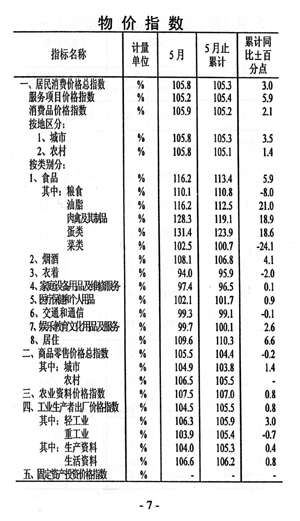 ——物價高位運行。全市居民消費價格總指數(shù)105.3,同比提高3.0個百分點。商品零售價格上漲4.4%,同比回落0.2個百分點。農(nóng)業(yè)生產(chǎn)資料價格上漲7.0%,工業(yè)生產(chǎn)者出廠價格上漲5.5%。