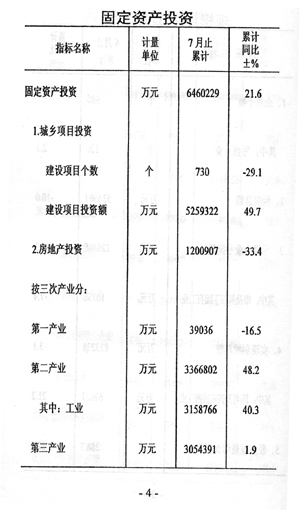 一一投資較快增長。固定資產(chǎn)投資完成646.O億元,增長21.6%,與上年同期相比增速回落8.6個百分點。其中房地產(chǎn)投資完成120.1億元,下降33.4%。工業(yè)投資完成315.9億元,增長40.3%,工業(yè)技改投資完成142.6億元,增長56.8%。