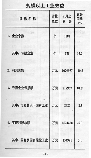 前三季度,實(shí)現(xiàn)利潤(rùn)總額103.0億元,下降10.5%,降幅比1-8月份擴(kuò)大1.0個(gè)百分點(diǎn);實(shí)現(xiàn)利稅總額162.4億元,下降5.0%,降幅擴(kuò)大1.5個(gè)百分點(diǎn)。