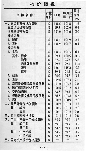 ——物價(jià)低位運(yùn)行。全市居民消費(fèi)價(jià)格總指數(shù)101.8,同比回落1.6個(gè)百分點(diǎn);商品零售價(jià)格總指數(shù)101.3,同比回落1.3個(gè)百分點(diǎn);農(nóng)業(yè)生產(chǎn)資料價(jià)格上漲1.2%;工業(yè)生產(chǎn)者出廠價(jià)格下降3.8%。