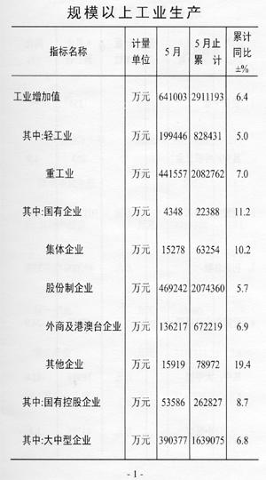 1-5月份,全市宏觀經(jīng)濟(jì)運(yùn)行情況如下: