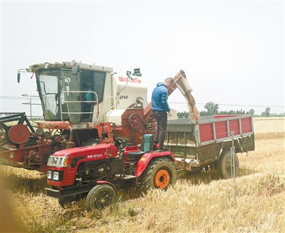 我市小麥機(jī)收工作有序展開。 記者 郭睿 攝