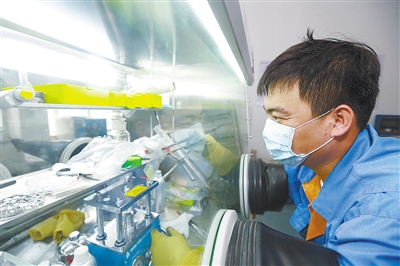 圖為6月24日,新奧工作人員正在進行紐扣電池制作與測試實驗,用于驗證石墨烯的性能。
