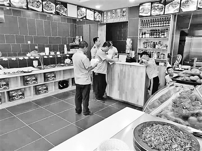 圖為執(zhí)法人員到飯店開(kāi)展突擊檢查。 《廊坊日?qǐng)?bào)》記者 楊雅淇 攝