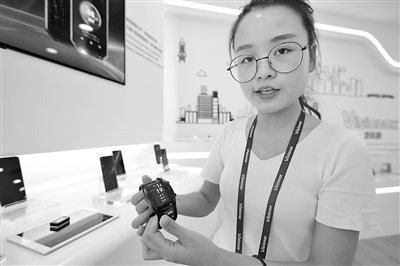 在京津冀一體化協(xié)同發(fā)展戰(zhàn)略方針指引下,霸州市積極營造良好環(huán)境,創(chuàng)立高新技術(shù)產(chǎn)業(yè)園區(qū)、引進高新科技產(chǎn)業(yè)項目,有力推動高新科技產(chǎn)業(yè)蓬勃發(fā)展。其中,以研發(fā)生產(chǎn)各種新型視覺屏幕的霸州云谷科技電子科技有限公司成為一道靚麗風(fēng)景。 圖為霸州云谷科技電子科技有限公司工作人員正在展示采用新型屏幕的腕戴電子產(chǎn)品。